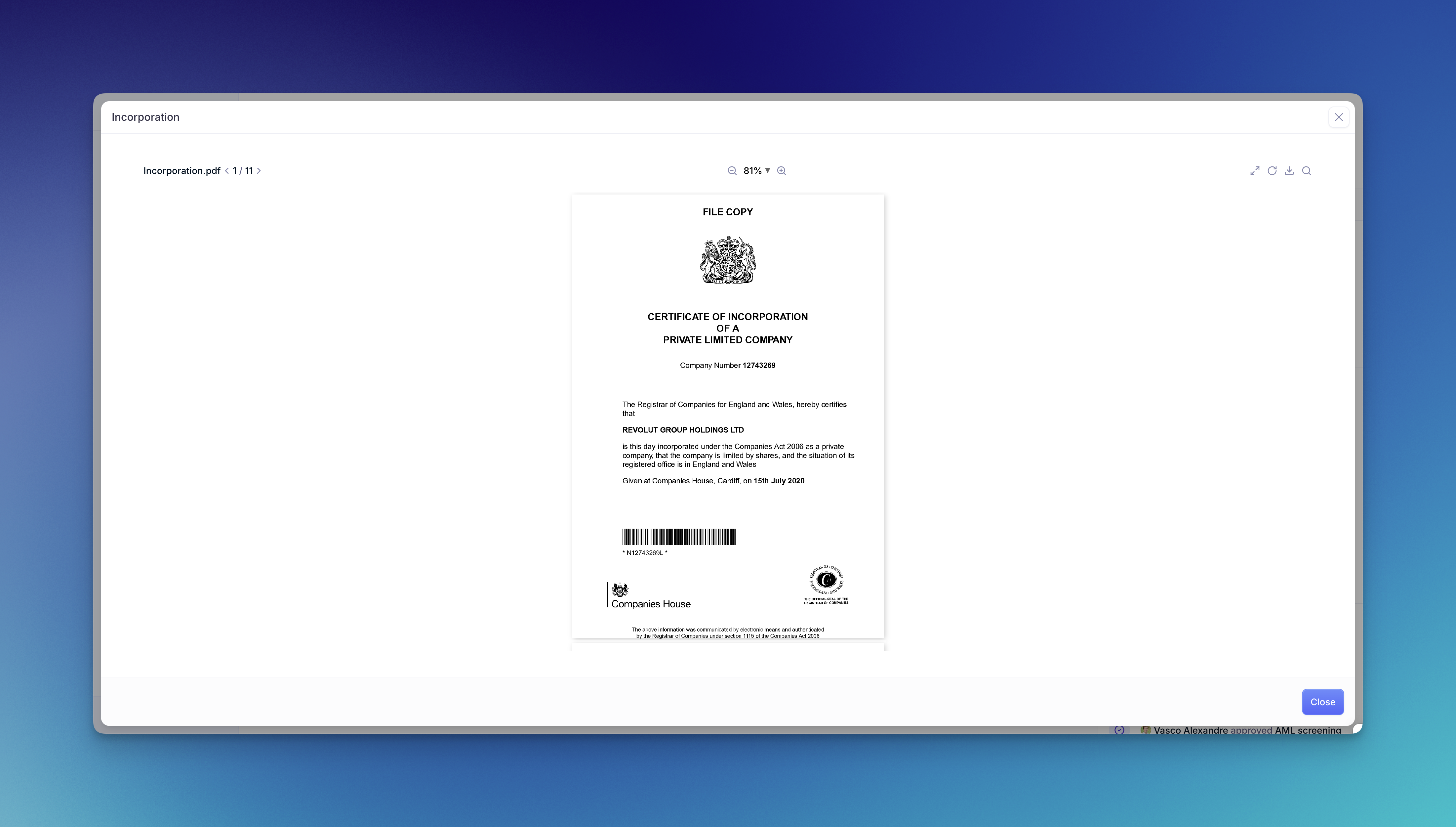 Once a document is successfully purchased, it is automatically matched to the relevant document check in the case, so your compliance team can review it immediately.