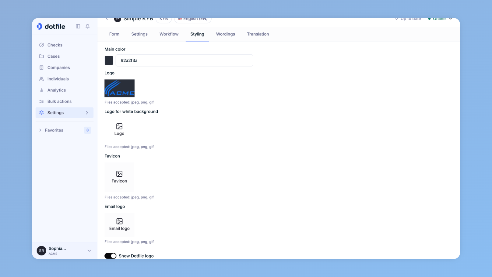 The look and feel of the portal can be customized in the Styling section. The branding options include:
